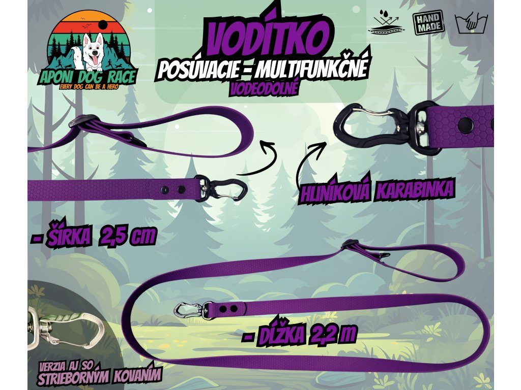 Vodítka sú vyrobené z prémiového hexanového materiálu, ktorý je známy svojou výnimočnou pevnosťou a 100 % vodeodolnosťou. Materiál nevsakuje vlhkosť, nezapácha, rýchlo schne a je extrémne jednoduchý na údržbu – stačí ho utrieť a je ako nové. Bez problémov zvládne dážď, blato aj tie najbláznivejšie dobrodružstvá.