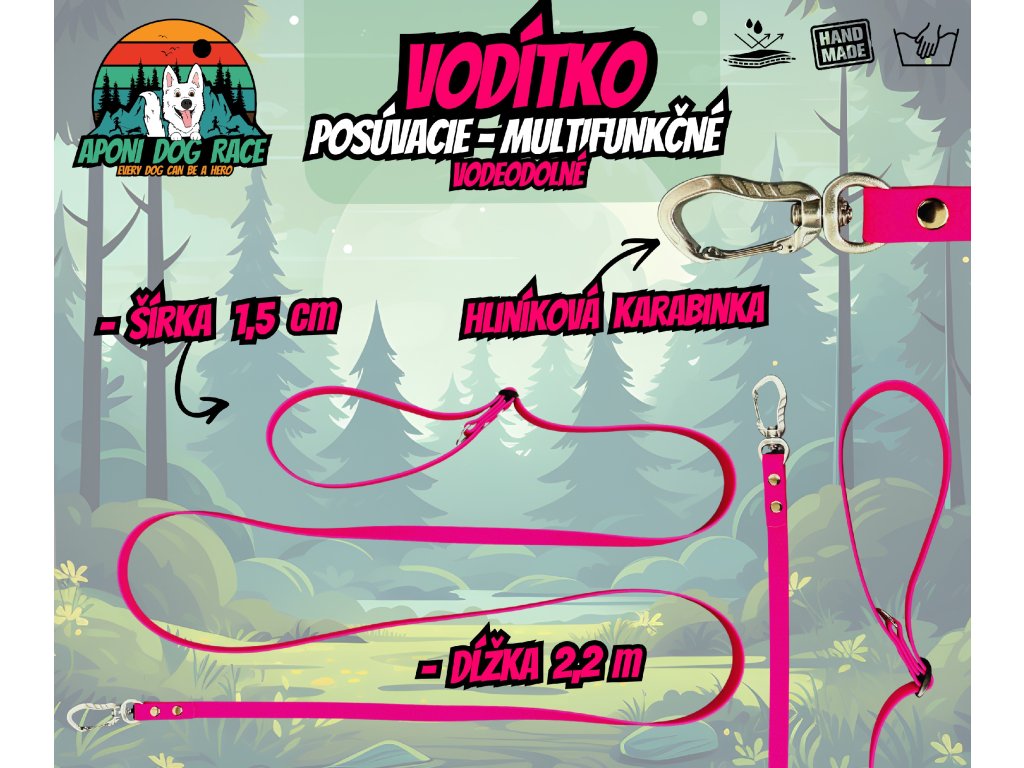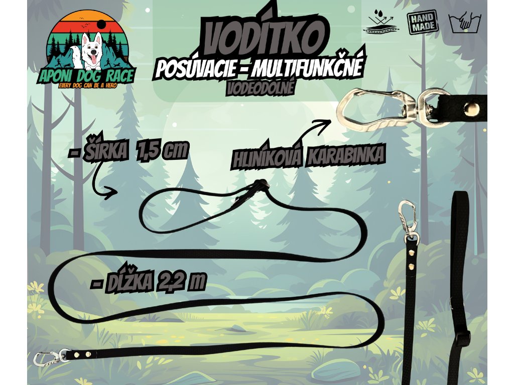 Vodítko je výnimočné svojím posuvným a multifunkčným riešením. Rúčka je nastaviteľná po celej dĺžke až ku karabíne, vďaka čomu si môžete plynule prispôsobiť dĺžku vodítka presne podľa potreby.